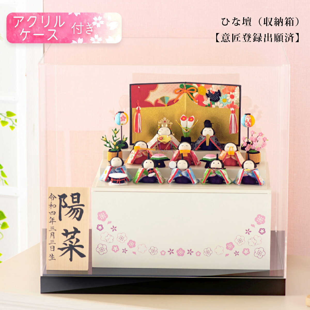 【2021年新作】雛人形 コンパクト おしゃれ 木製収納ケース アクリルケース 【収納飾り 三段 ちりめん 令花 れいか雛 ホワイト オリジナル】 ケース飾り 10人飾り/親王/三人官女/五人囃子 龍虎堂/リュウコドウ