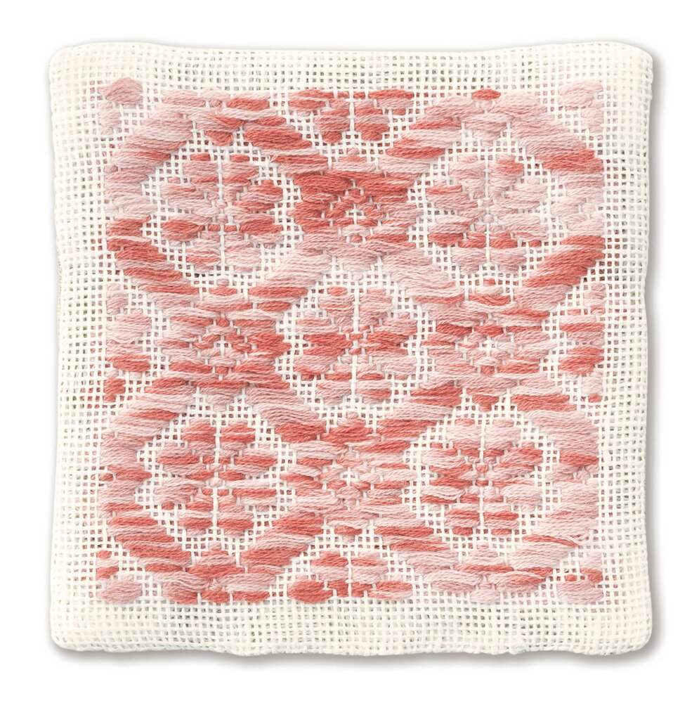 材料と作り方説明書が揃っているキットなら、横に一段づつ刺し進んで創られる美しい幾何学模様のこぎん刺しが直ぐに楽しめます。