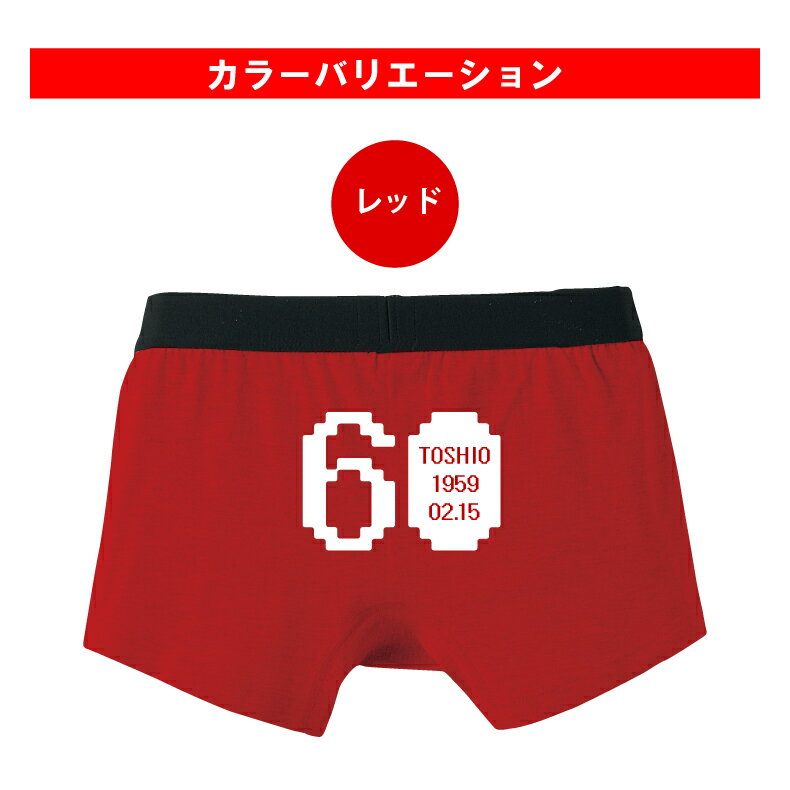 還暦祝い 名入れ パンツ 【 ボクサーパンツ 】【 還暦 選べるパンツデザイン 】 赤い 名前 オリジナルプリント プレゼント 父 母 【赤】【コットン】 おもしろ おしゃれ シャレもん しゃれもん サプライズ