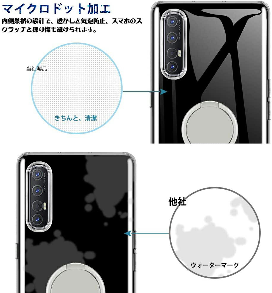 OPPO Reno3 5G ケース リング付き TPU クリア 耐衝撃 オッポ レノ 3 5G カバー 傷つけ防止 マイクロドット加工 スマートフォン 車載ホルダー対応 スマホケース スマホカバー simフリー 携帯ケース 落下防止